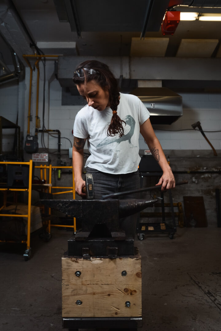 Made Forge creates one-of-a-kind shelving units, with hardwood surfaces and forged steel supports. Each piece is designed and fabricated by blacksmith and designer, Natalie Rekai.